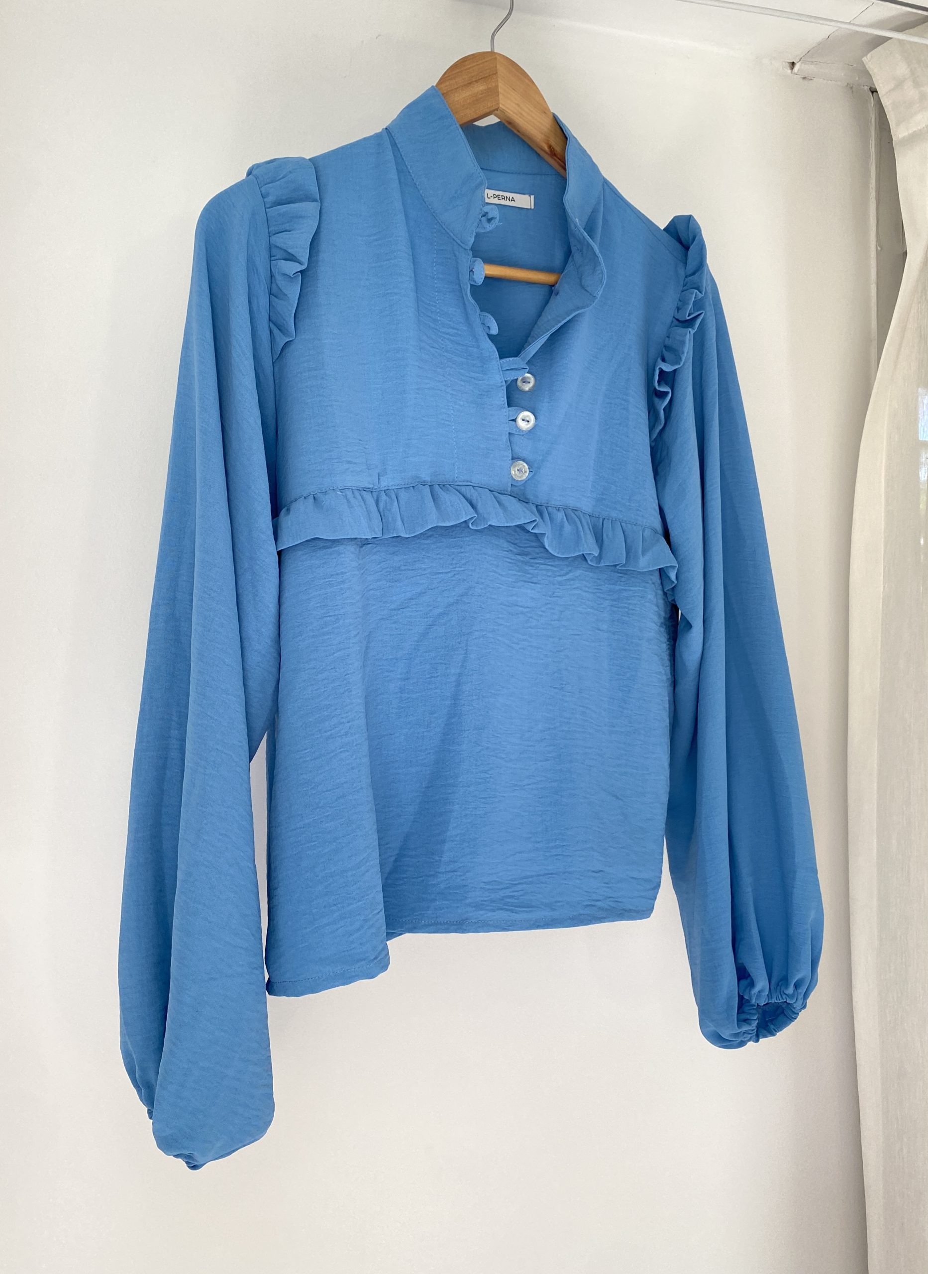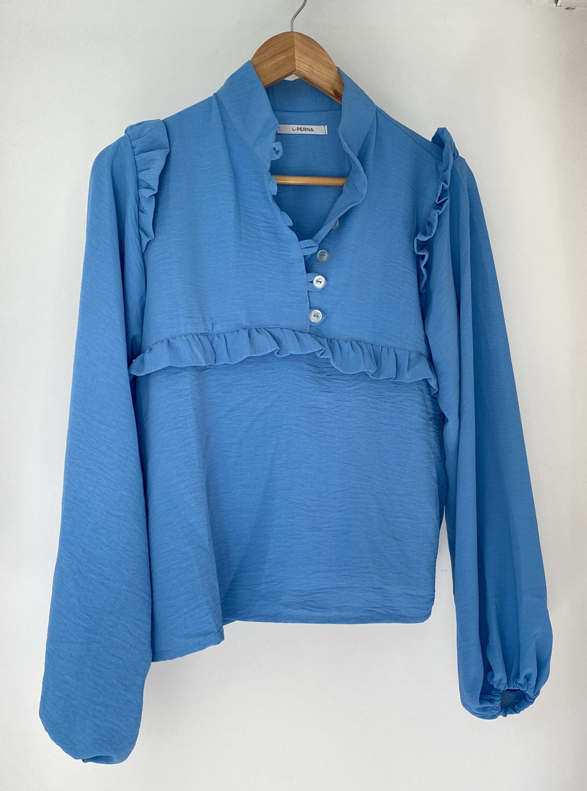 Camisa cuello mao con varios detalles y mangas abuchonadas