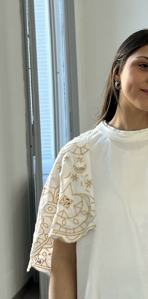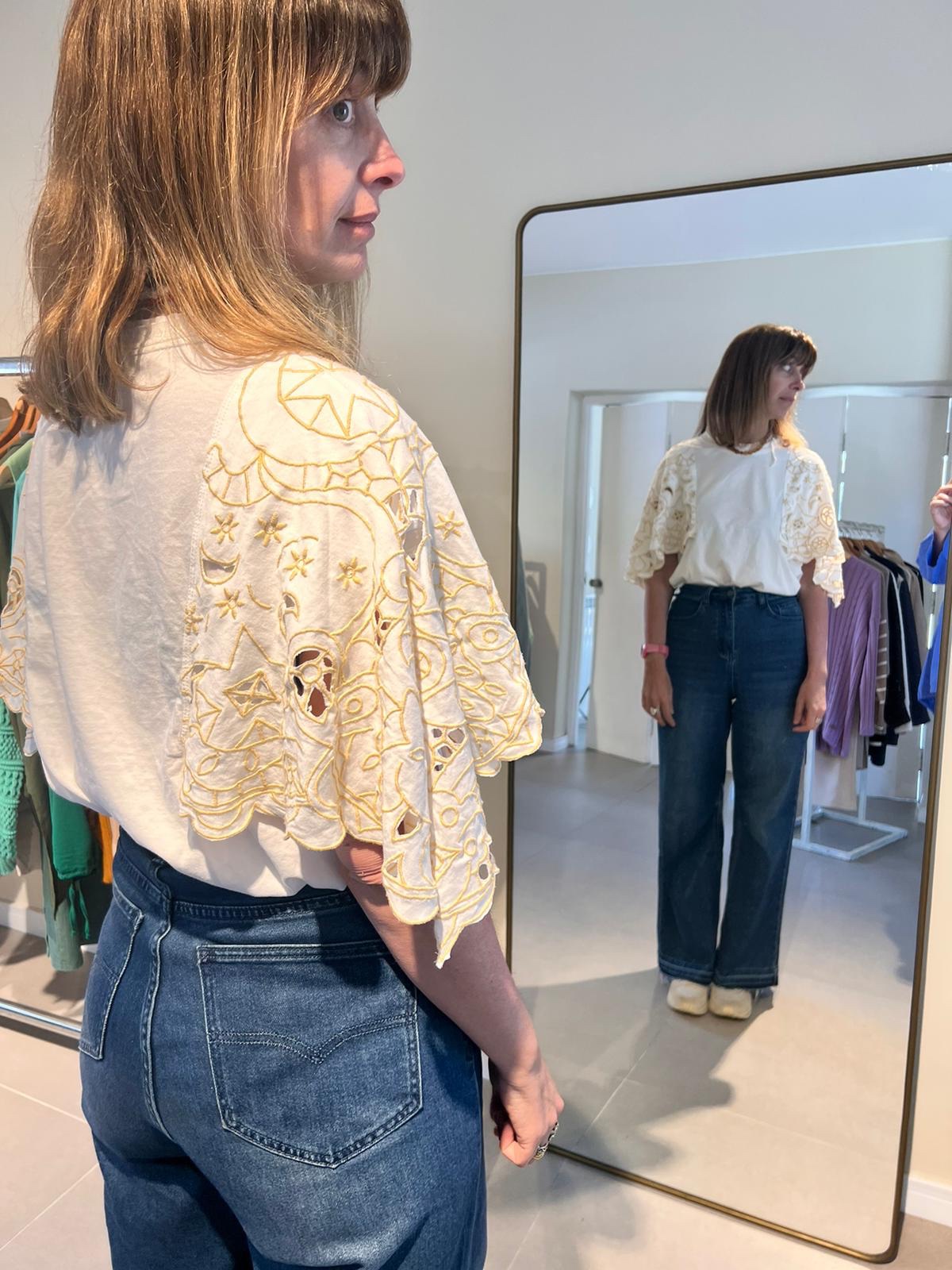 Remera manga bordada