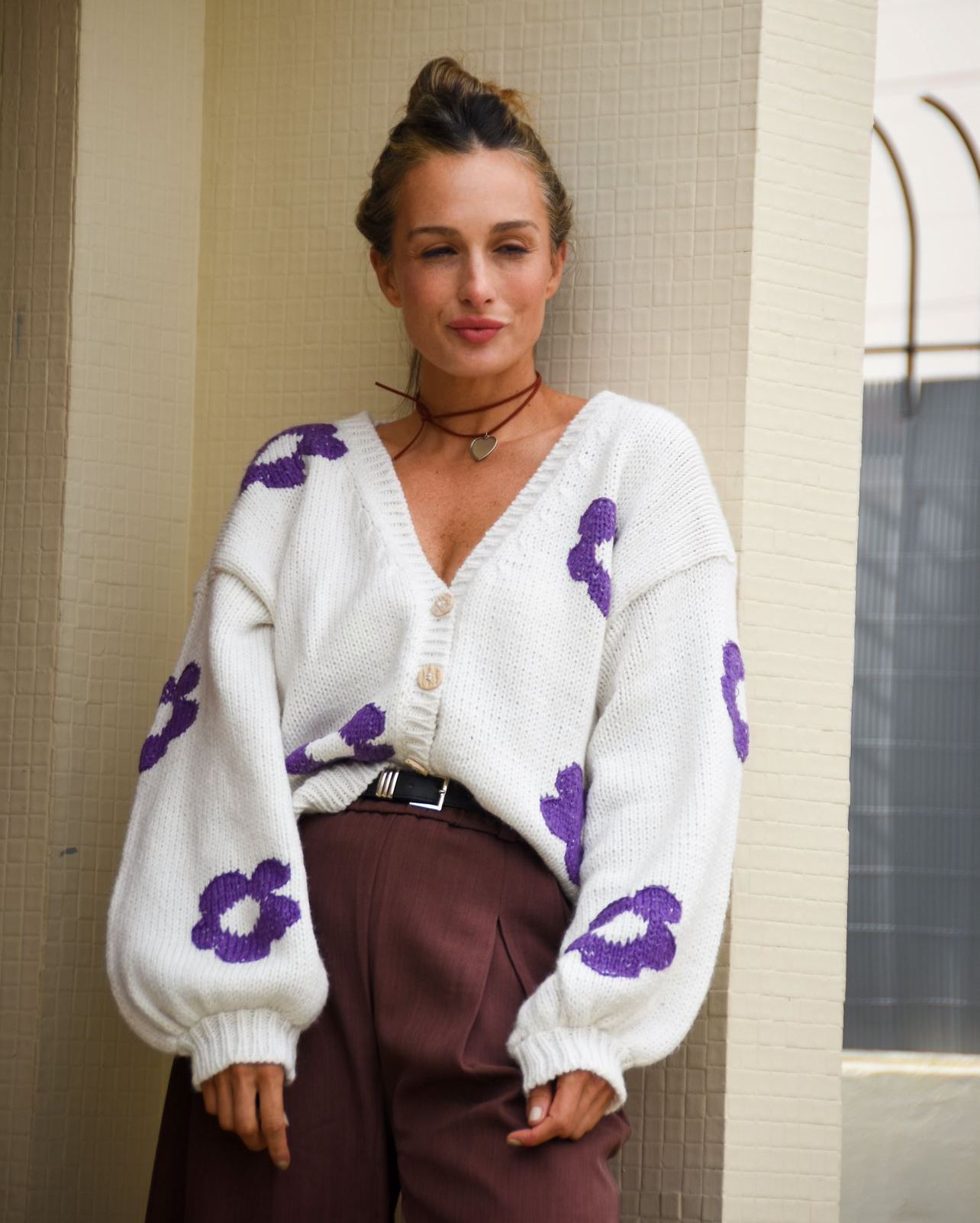 Saco tejido over con flores lila – azul o verde $3100
