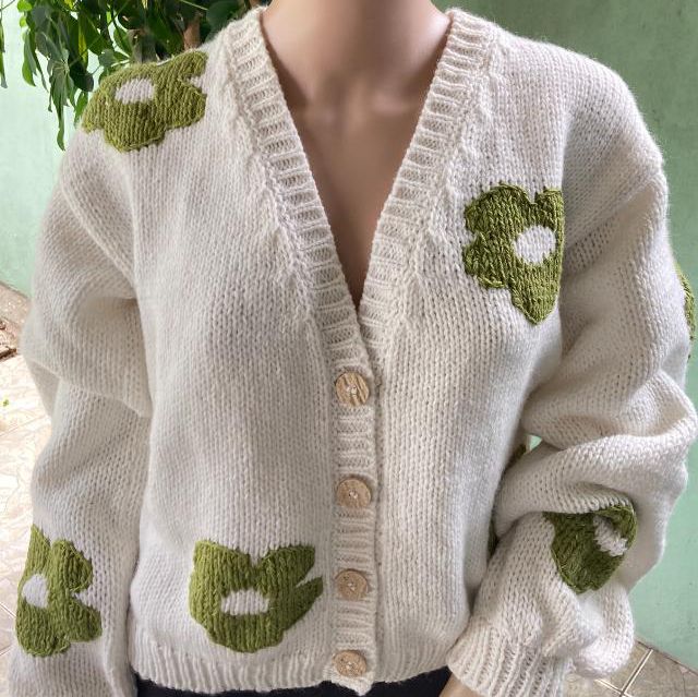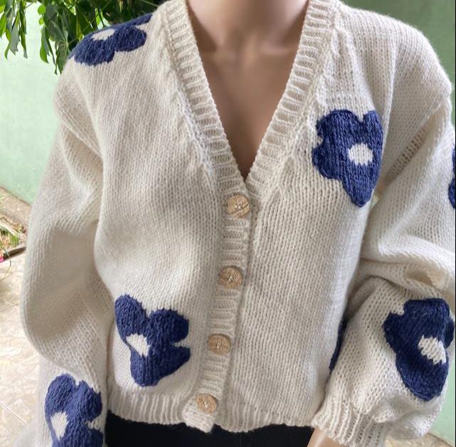 Saco tejido over con flores cantidad